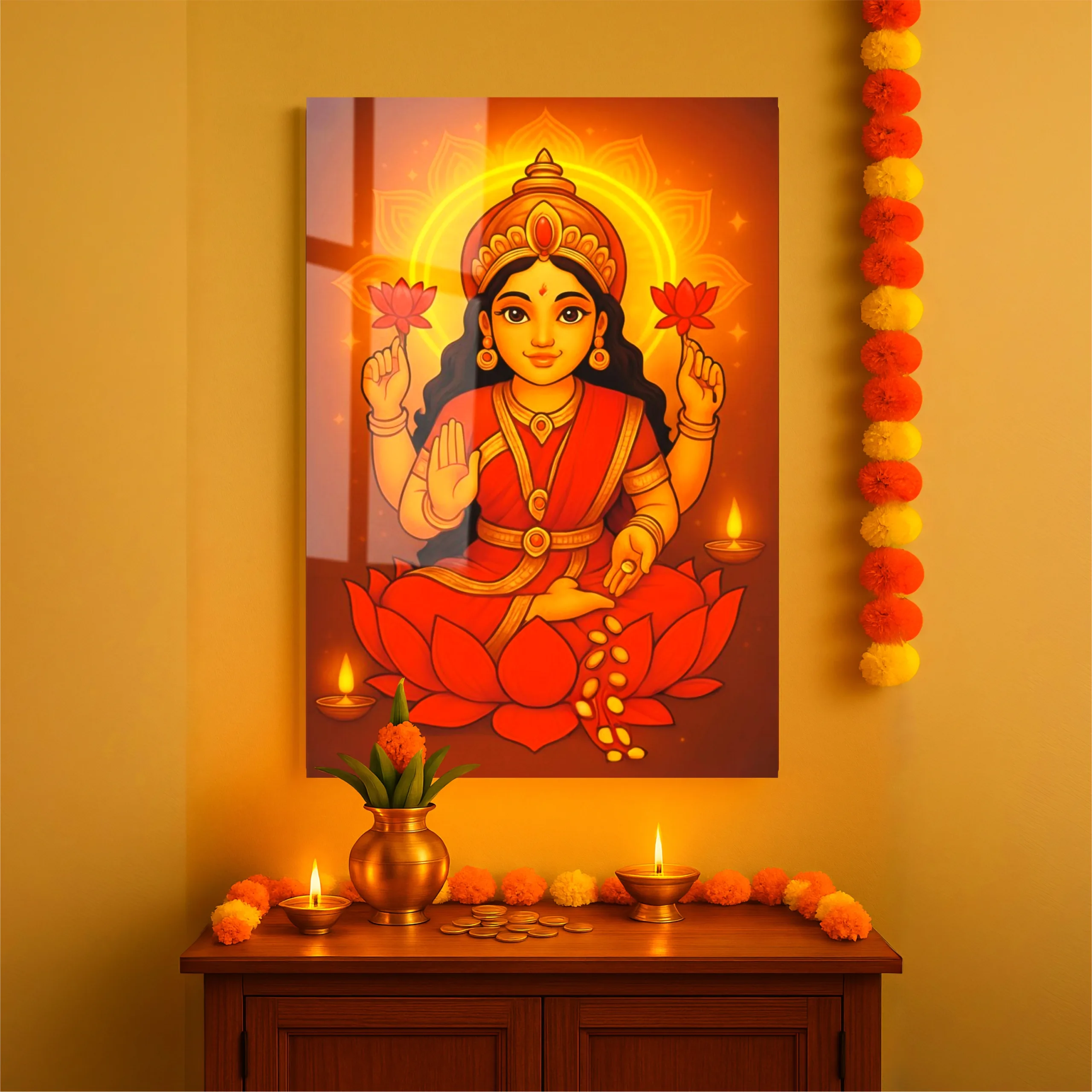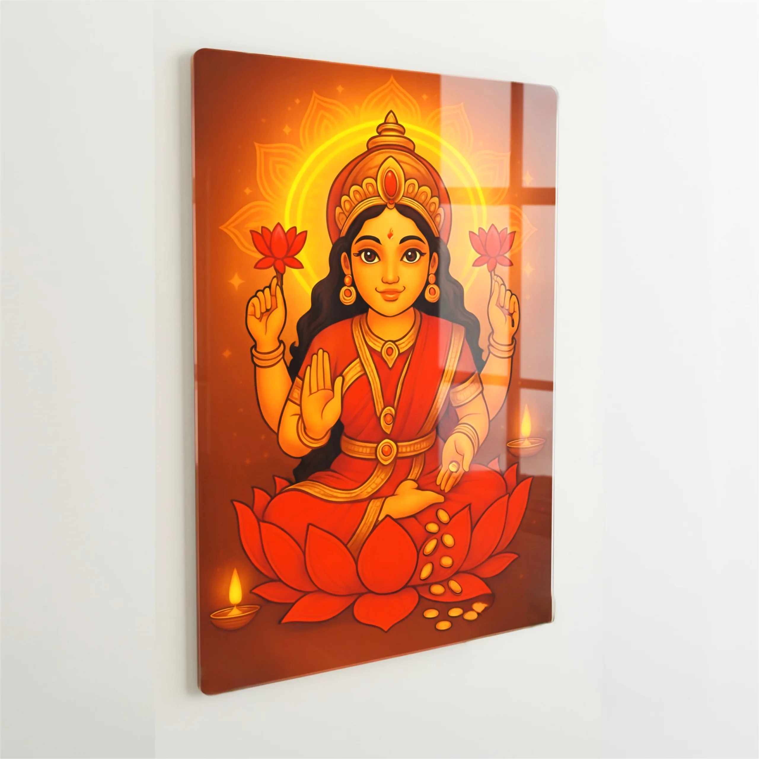Maa Lakshmi Wall Frame – UV Printed Acrylic | Glossy & Vibrant Lakshmi Ji Artwork | Durable, Easy Peel-&-Paste Pooja Décor