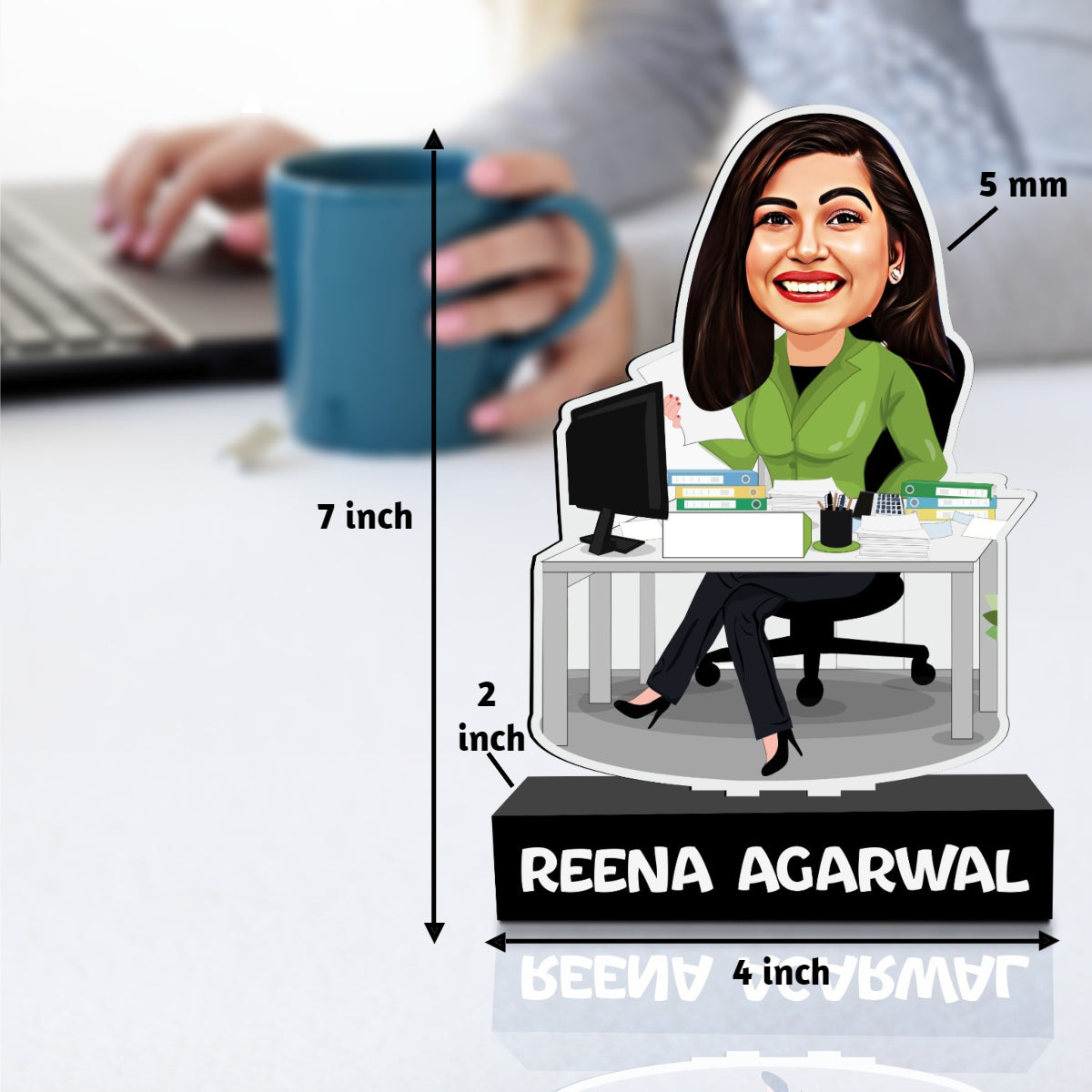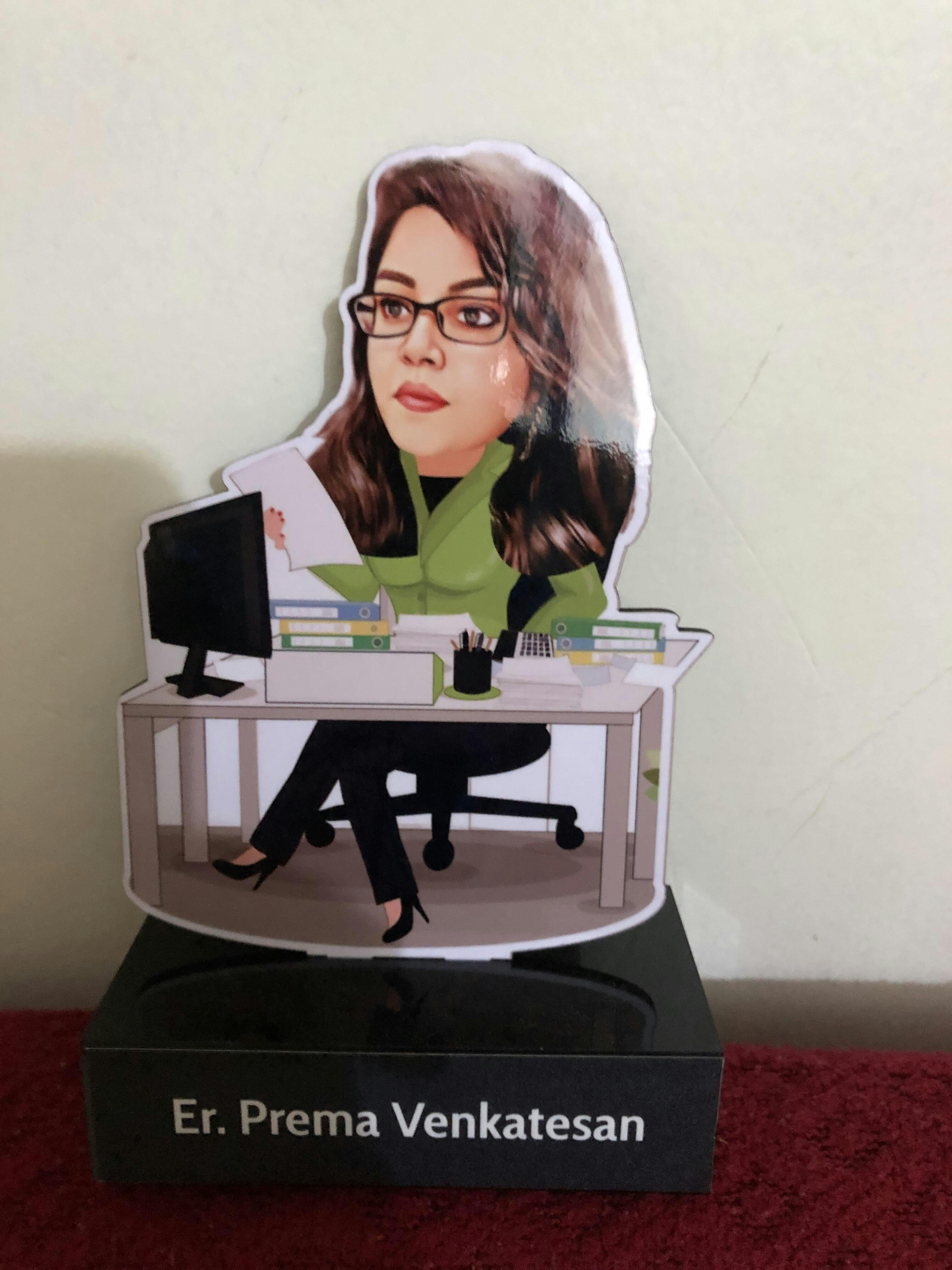 We directly UV print upon 5 mm white acrylic. This gives the caricature up to 20 year of life span indoors with no change in print. No MDF/vinyl work, like other market options, which do not have life.