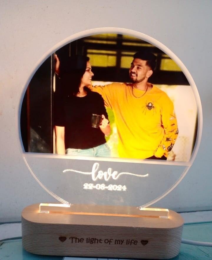 Illuminate the cherished memories of your first year together with our exquisite Personalized Photo Lamp on Acrylic – a heartfelt and radiant token of love. This uniquely crafted lamp beautifully combines the warmth of a wooden base with the timeless elegance of acrylic, creating a mesmerizing display that captures the essence of your journey as a couple. 1st Anniversary Gift