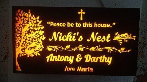 All our acrylic and steel name plates are waterproof. But our wooden name plates and UV printed name plates are to be used under shelter.