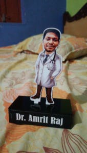 We directly UV print upon 5 mm white acrylic. This gives the caricature up to 20 year of life span indoors with no change in print. No MDF/vinyl work, like other market options, which do not have life.