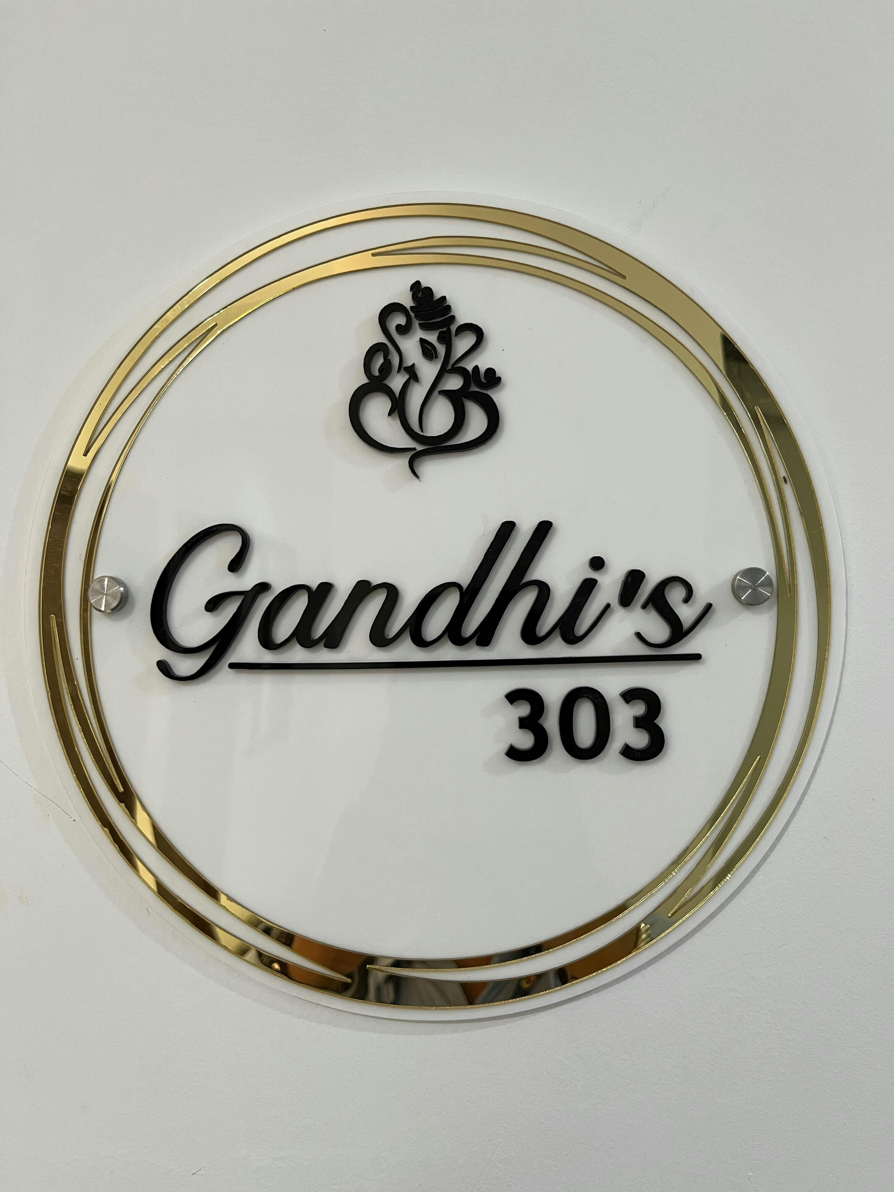 The rings of name plate are made in golden mirror. It is a beautiful representation of the Sun. The reflective texture of gold gives a very premium look to the name plate.Seamless circular geometry