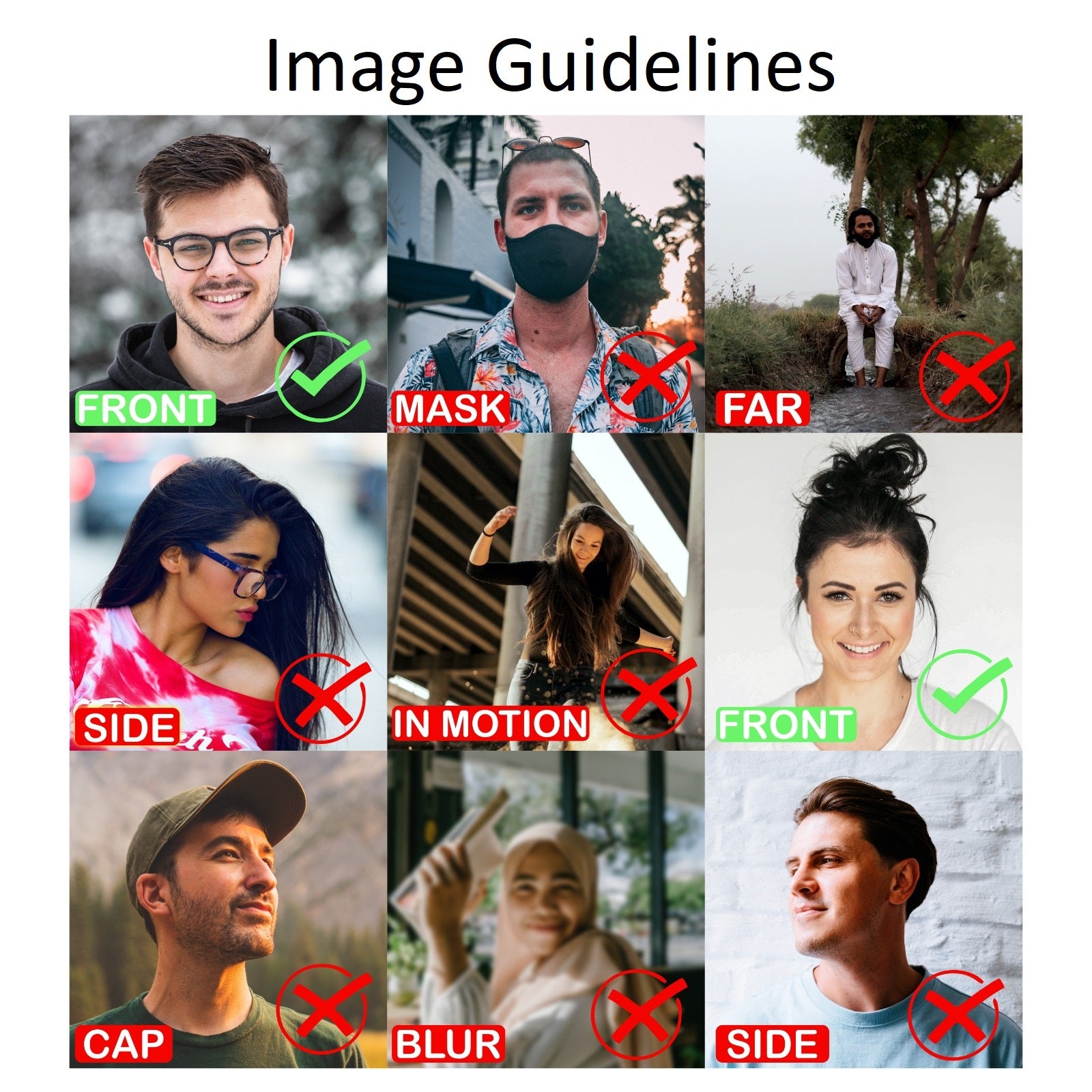 - Send two front facing photos. Side/cross face pictures won’t look good.