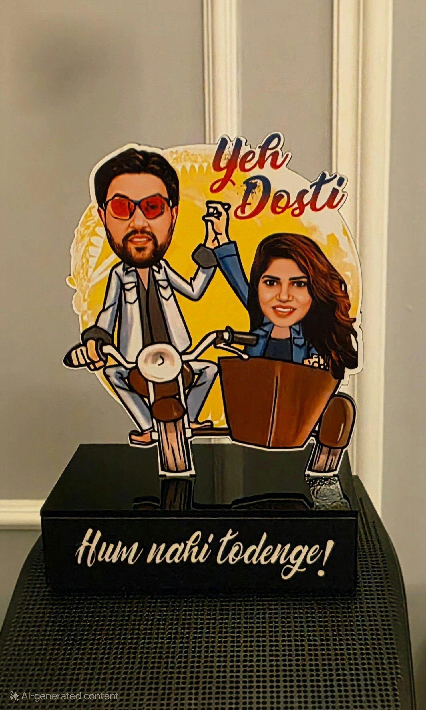 We directly UV print upon 5 mm white acrylic. This gives the caricature up to 20 year of life span indoors with no change in print. No MDF/vinyl work, like other market options, which do not have life.